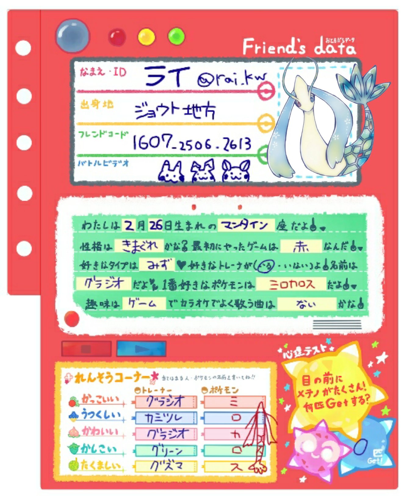 تويتر ライ على تويتر 自分のポケモンプロフ帳 テンプレお借りしました ミロカロスグッズください W T Co Gdnaiyfzo3